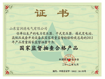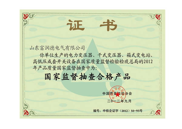 國家監(jiān)督抽查合格產(chǎn)品證書 -