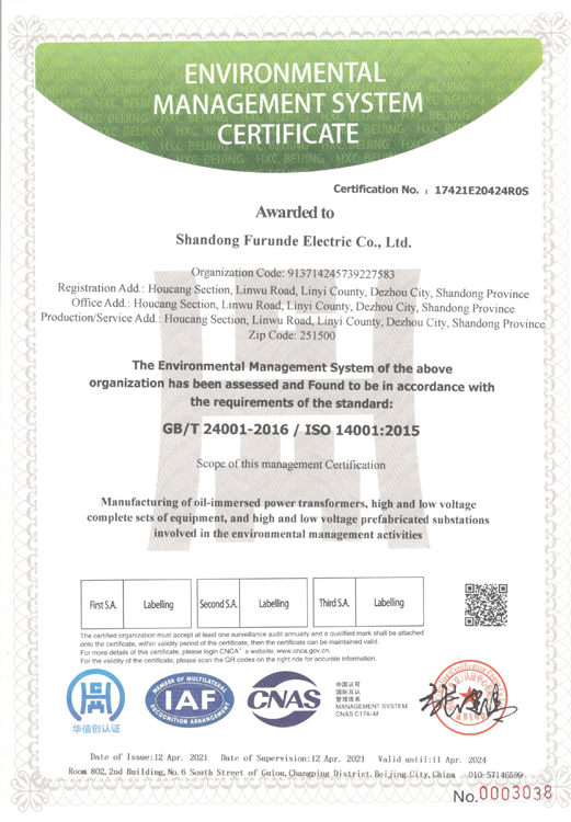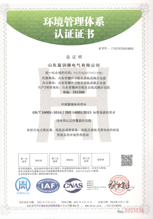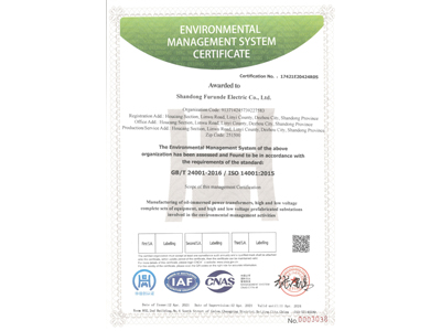 ISO14001環(huán)境管理體系認(rèn)證證書 -
