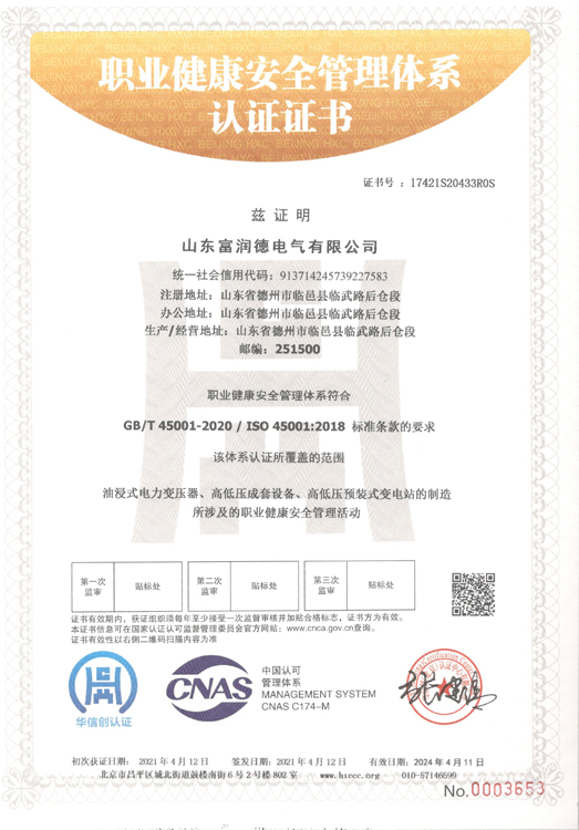 ISO45001職業(yè)健康安全管理體系認(rèn)證證書